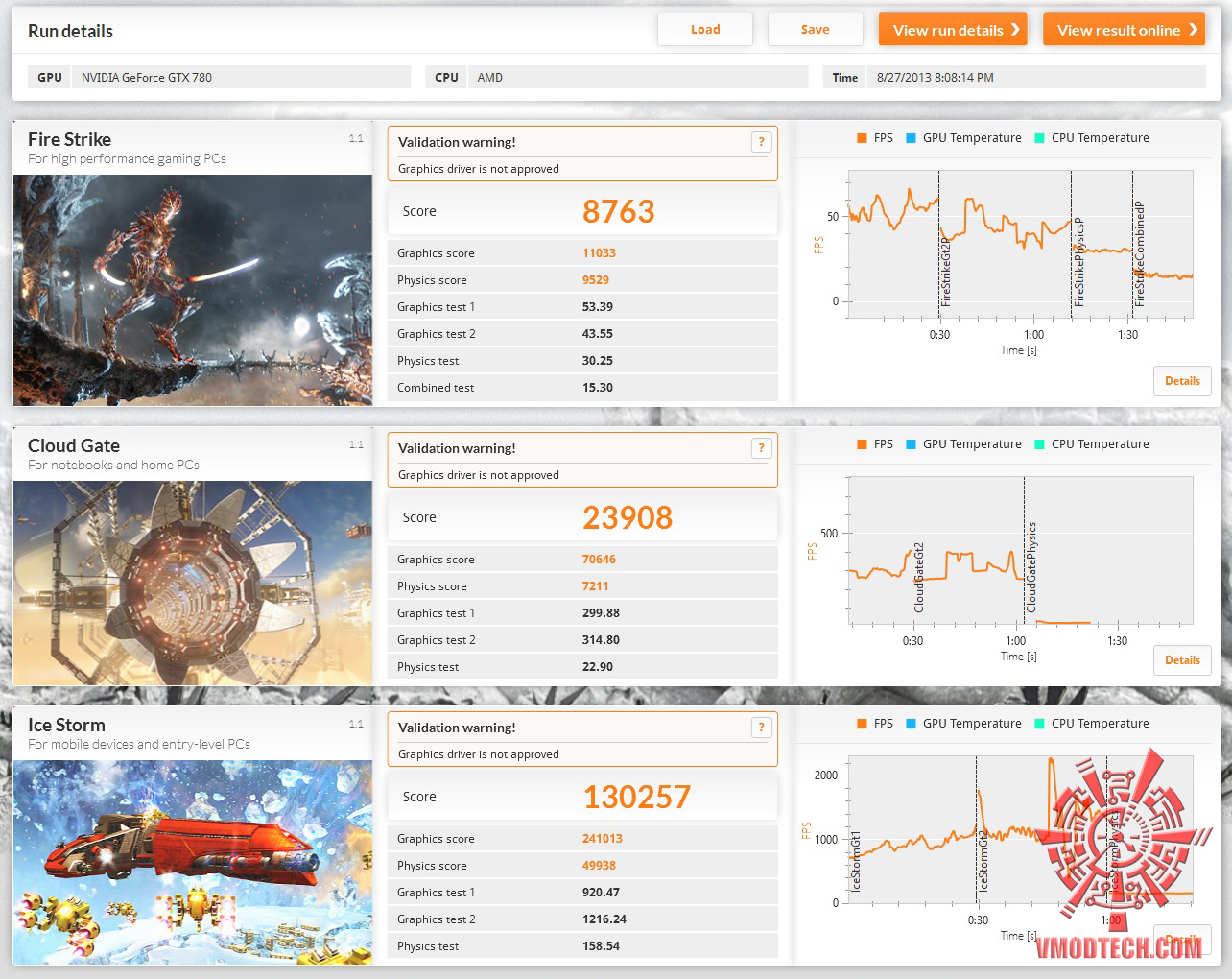 สำหรับชุดทดสอบ 3DMark 2013 ชุดทดสอบ Fire Strike คะแนนออกมา 8763คะแนนแรงจัดกันจริงๆ
