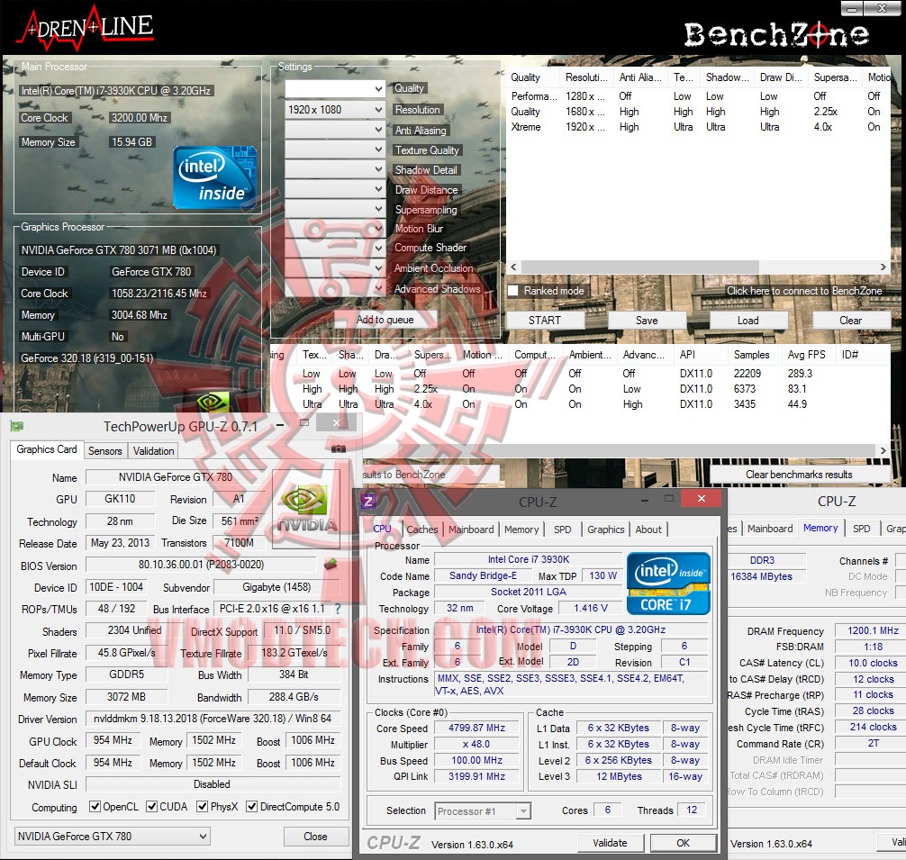 GIGABYTE GeForce GTX 780 WINDFORCE 3X Default @ 954/1502/1006 MHz Core/Mem/Boost