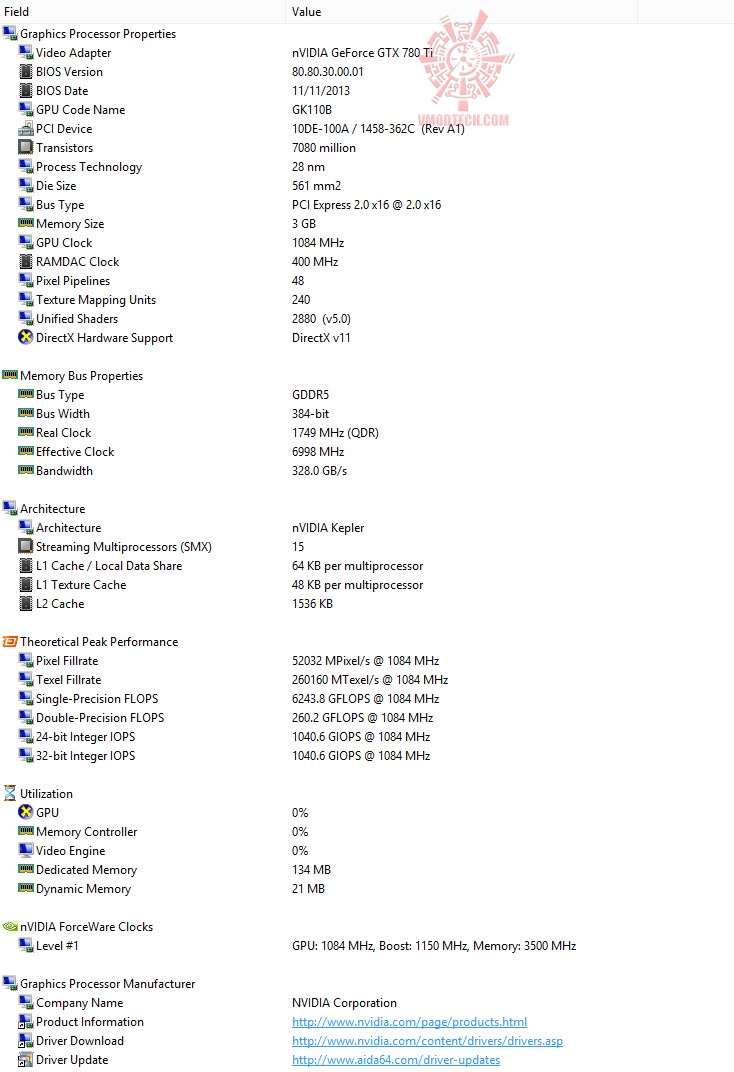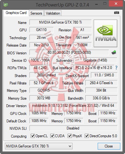 GIGABYTE GeForce GTX 780 Ti GHz Edition WINDFORCE Default from GPUZ