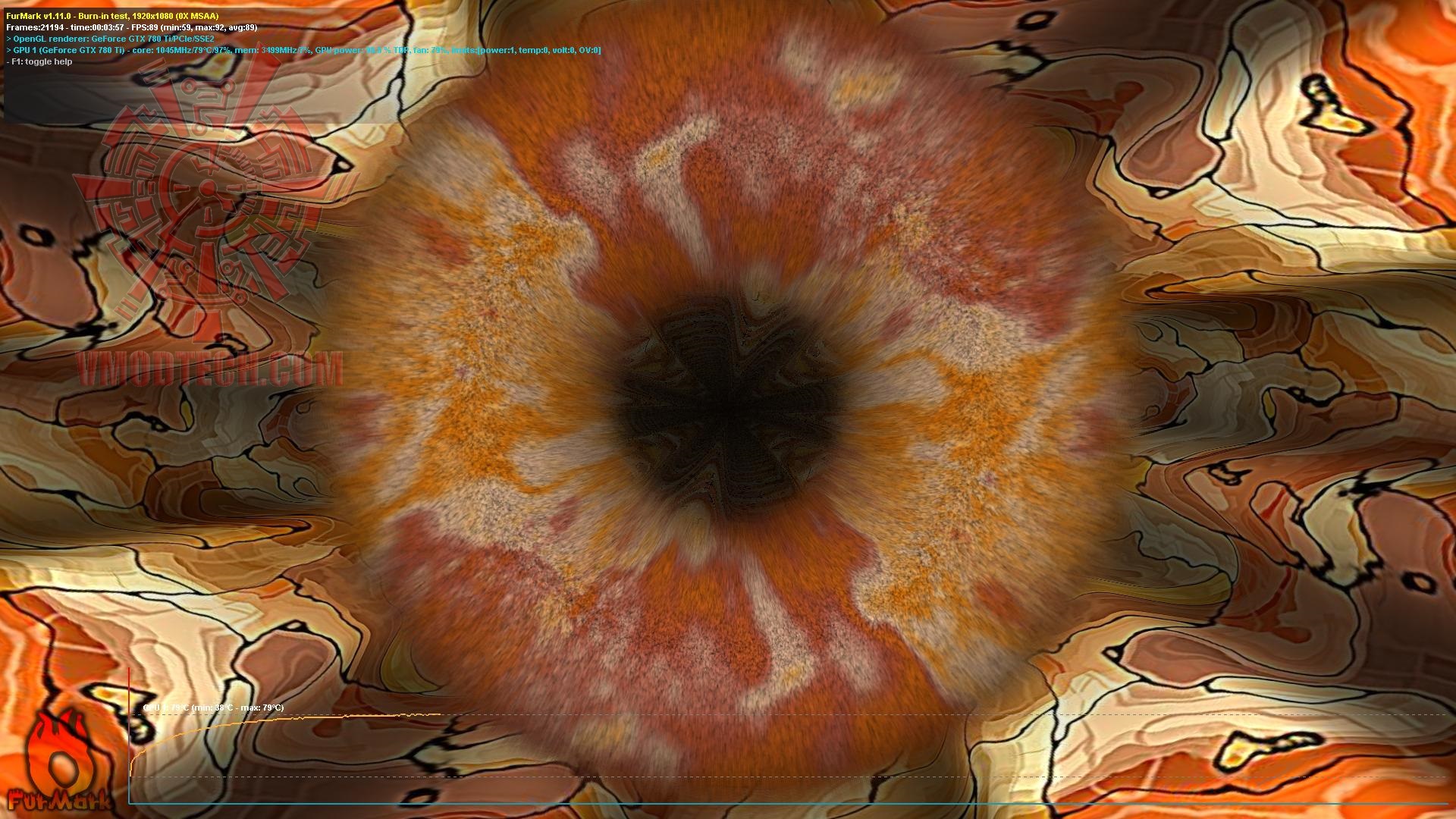 อุณหภูมิของการ์ดขณะ Furmark นั้นจะอยู่ที่ไม่เกิน 79 องศา รอบพัดลมออโต้ 78 เปอร์เซนต์ ชิลมากทั้งความร้อนและเสียง