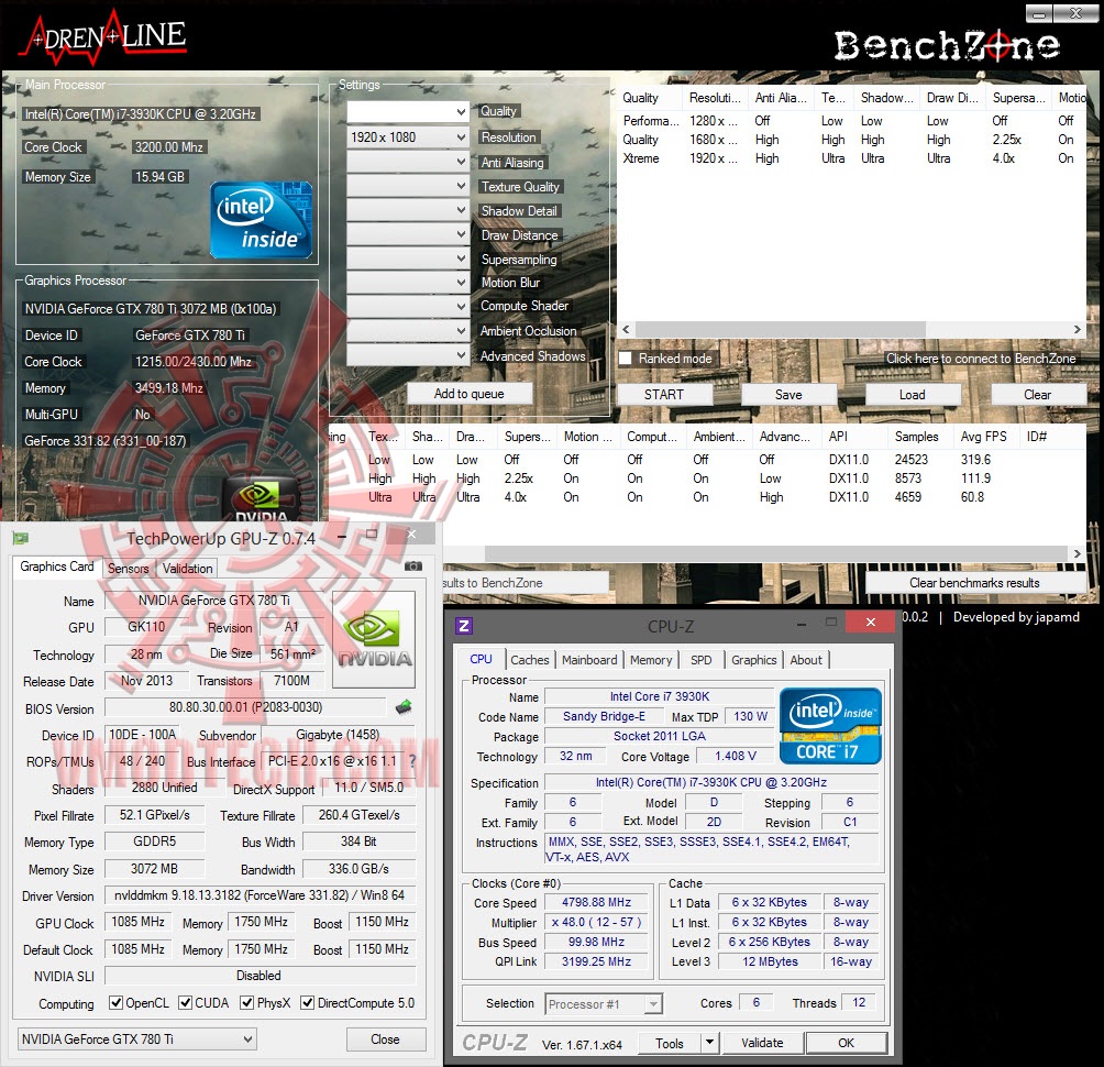 GIGABYTE GeForce GTX 780 Ti GHz Edition WINDFORCE Default @ 1085/1750/1150 MHz Core/Mem/Boost