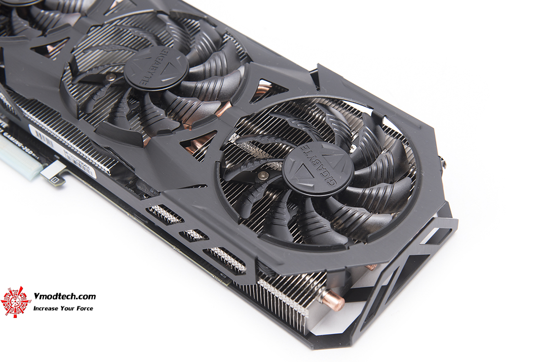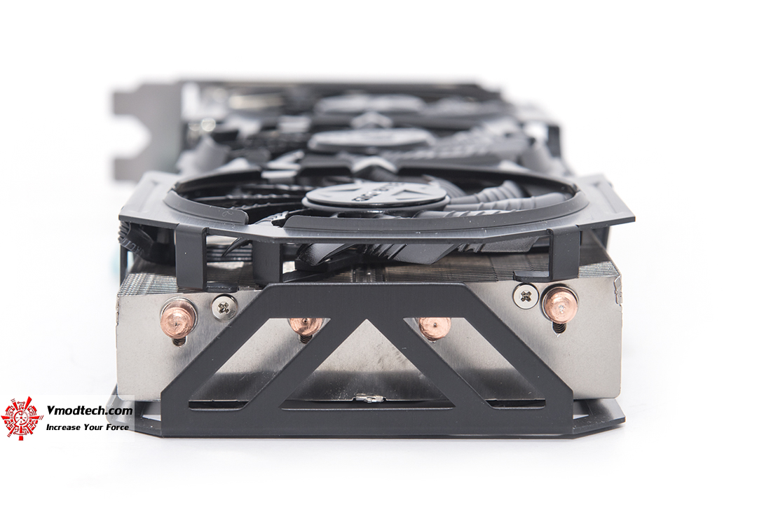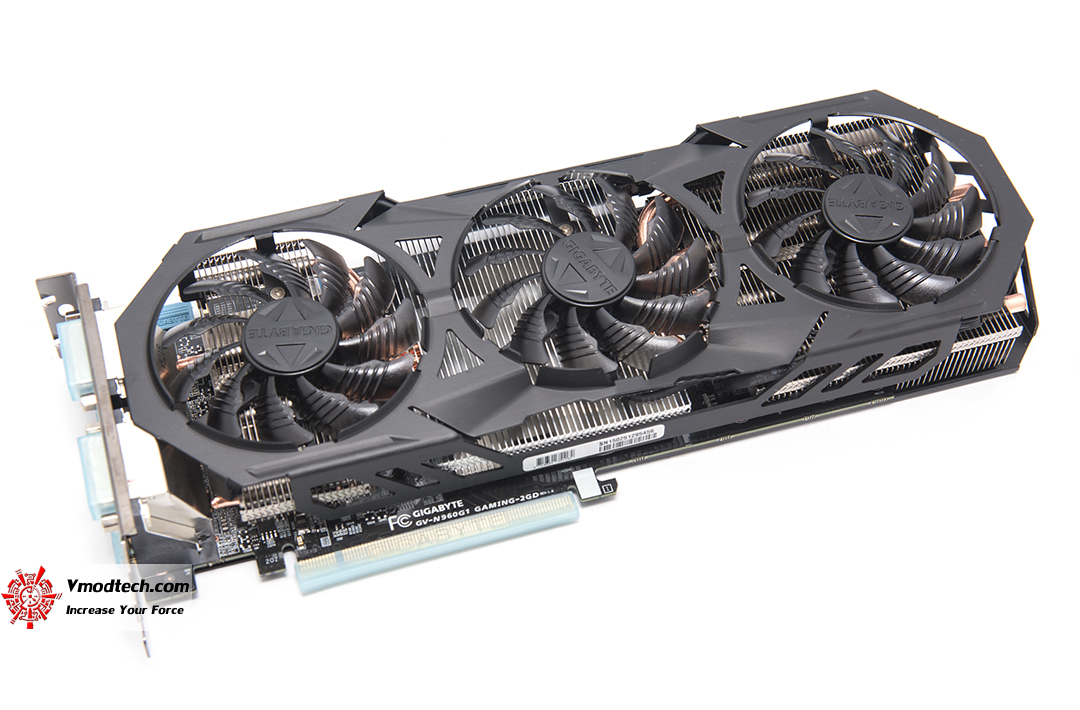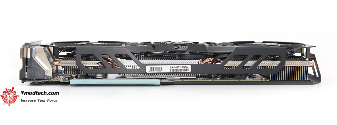 ตัวการ์ดรวมฮีทซิ้งค์นั้นมีขนาดประมาณสองสล๊อดครับ ฟินระบายความร้อนและท่อฮีทไปท์นั้นรมดำมาดุดันมาก