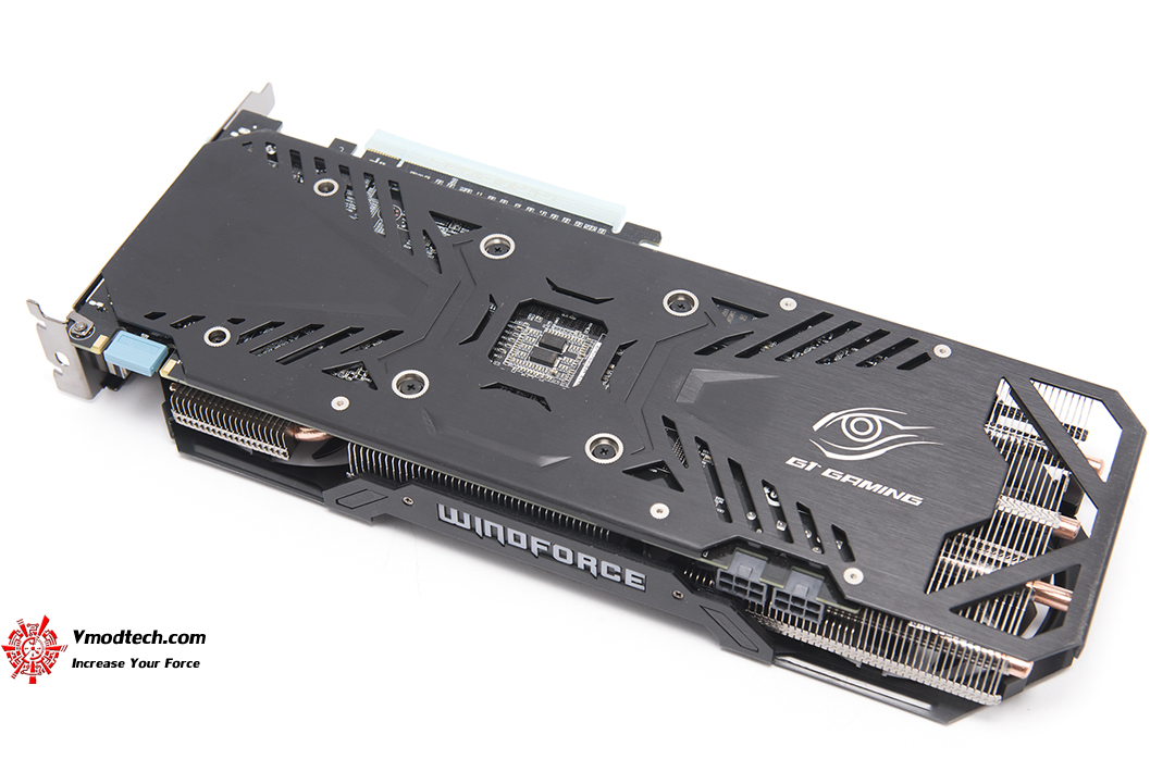 ด้านหลังการ์ดนั้นจะปูเต็มไปด้วย Backplate G1 Gaming ช่วยระบายความร้อนและเพิ่มความเท่ห์ขึ้นไปอีก