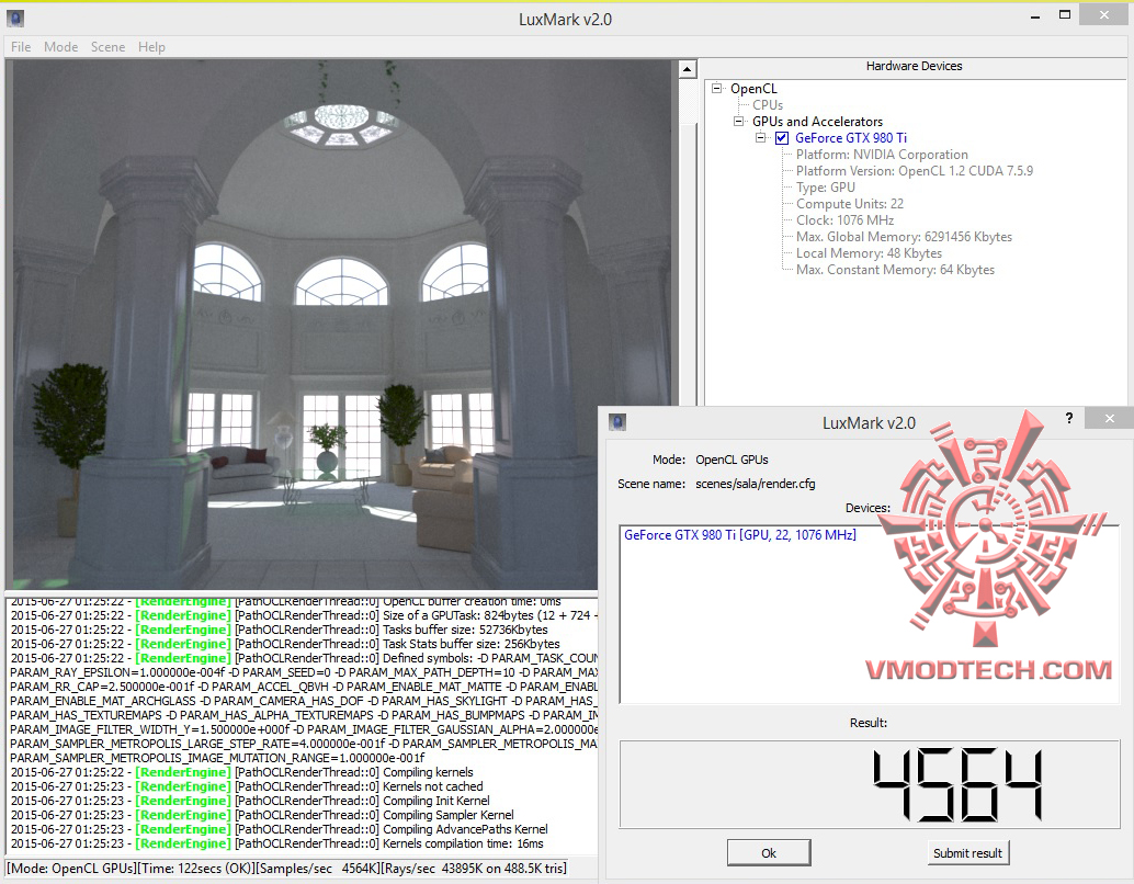 LuxMark โปรแกรมเทสด้าน Open CL ก็แรงจัดจริงๆที่ 4564คะแนน