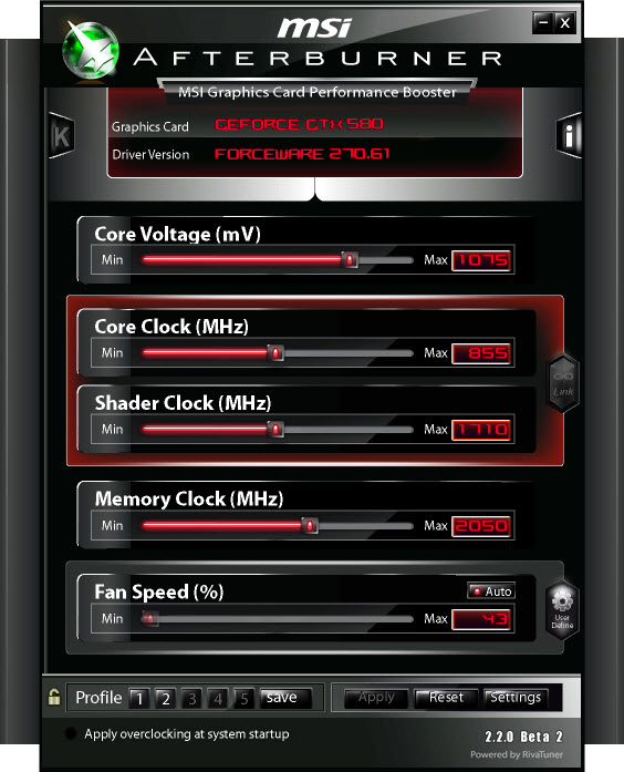 การ์ดตัวนี้ ความเร็วมาตรฐานที่มากับการ์ดนั้น 855/1025/1710 Core/Mem/Shader ครับ อย่างที่บอกมัน Overclock มาจากโรงงานเลย