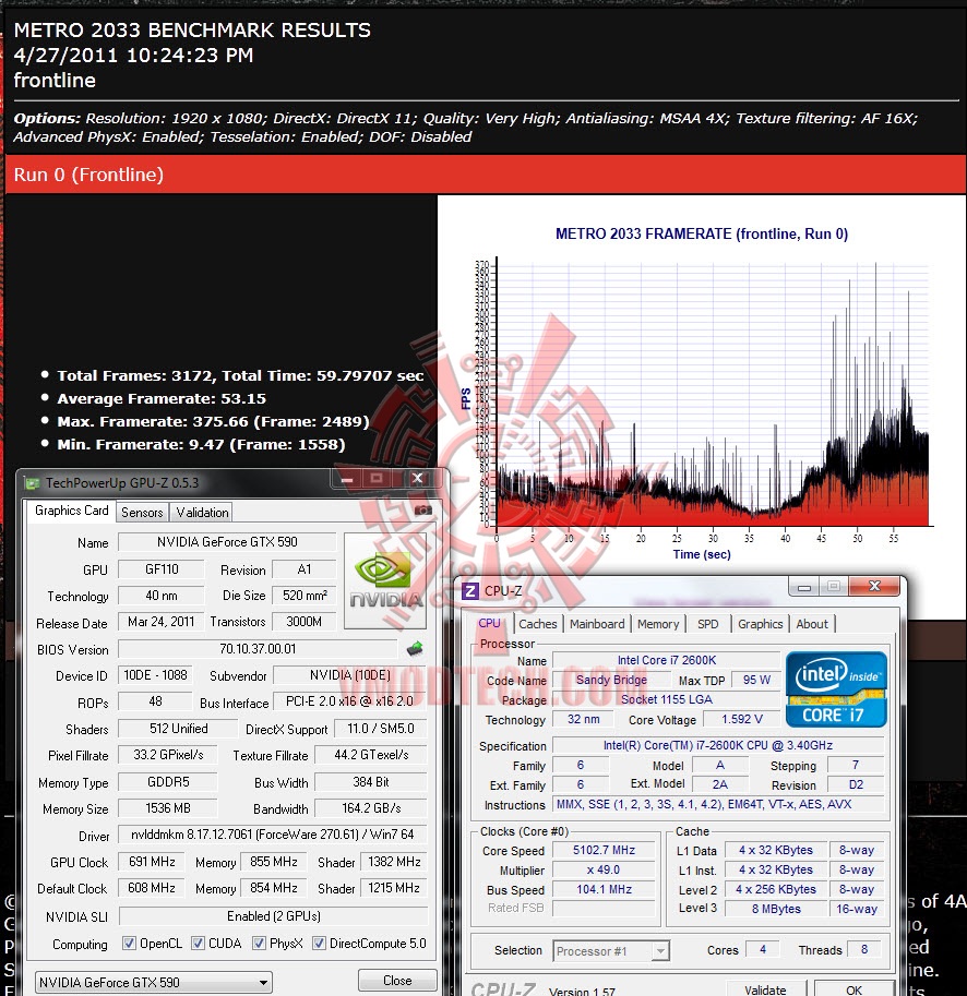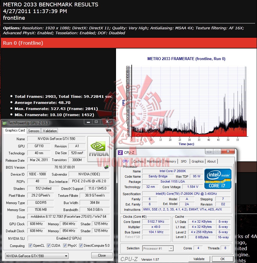 Metro 2033 นี่ก็เช่นกัน ที่ค่ายแดงแซงห่างๆเพราะว่าตอนนั้นเทสที่ Resolution ต่ำกว่านี้ คราวนี้เป็น Full HD ดังนั้นดูเฉพาะ Frame Rate ครั้งนี้ก่อนนะครับ