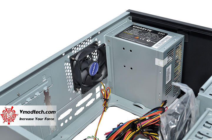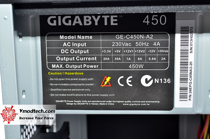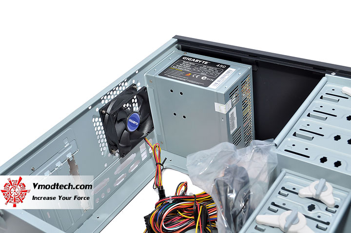 …จุดเด่นสุดๆของเคสตัวนี้ก็คือมีแถม Power Supplies ของทาง GIGABYTE ที่มีขนาด 450W มาให้ 1ลูกครับ โดยจ่ายไฟ +12V ได้ 2Rails +12V1=7A +12V2=8A ซึ่งน่าจะเพียงพอสำหรับ Systems ทั่วๆไป ที่ไม่กินไฟมากนักครับ
