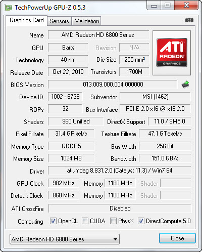 . Overclock 982/1203 Core/Mem