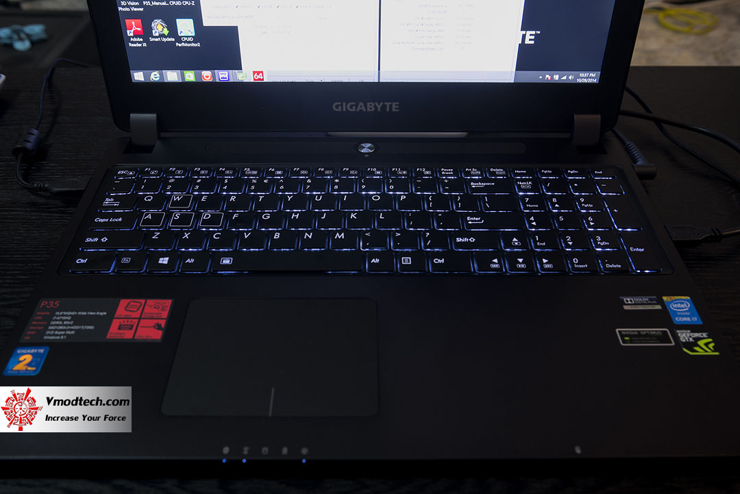 ในส่วนของคีย์บอร์ดนั้นสามารถเปิดปิดไฟตรงแป้นพิมได้ตามสมัยนิยมครับ โน๊ตบุ๊คแรงๆมันต้องพิเศษ
