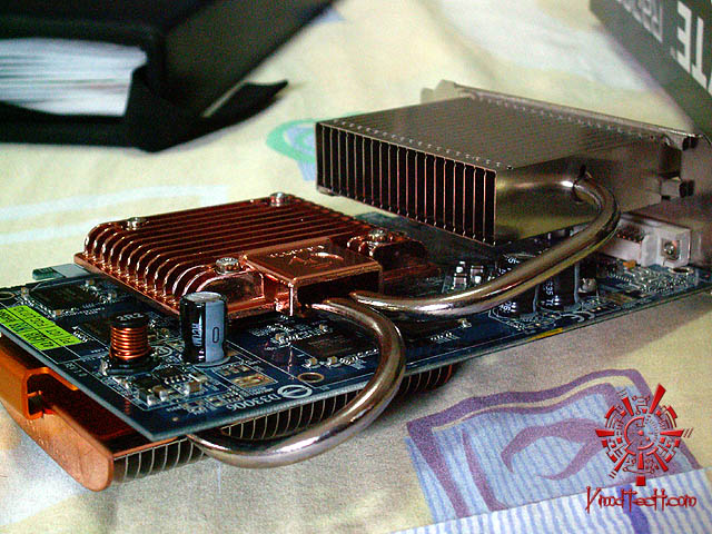 มาดูด้านบนตัวการ์ด ก็จะเห็นฮีทไปป์สองท่อ ขดกันอยู่เกือบจะเป็นรูปตัว U ครับ ดูแล้วมันก็เท่ไปอีกแบบ อิอิ
