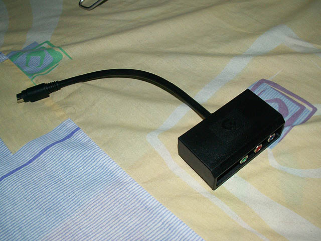 เนื่องจากการ์ดตัวนี้ ในเสป็คหน้ากล่องก็ระบุไว้ชัดเจนว่า รองรับ HDTV ดังนั้นจึงต้องมีไอ้ตัวนี้ครับ ที่รับสัญญาณภาพมาจากช่อง Svideo แล้วก็ค่อยไว้ต่อกับสายสัญญาณของ HDTV ซึ่งมีสามสายด้วยกัน หรือจะไว้ต่อกับสายสัญญาณ SVIEDO หรือ AV มาตรฐาน ก็ได้เหมือนกันครับ ซึ่งเจ้าตัวนี้เนี่ย ด้านหลังมันจะมีไอ่ที่ติดแบบตีนตุ๊กแกอยู่ สามารถติดเข้ากับเคสของท่านได้เลยครับ