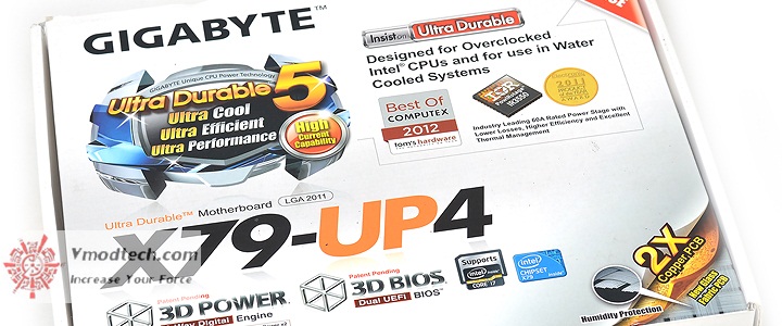สวัสดีครับสมาชิก Vmodtech.com ทุกๆท่าน วันนี้คิวรีวิวจากผมก็กลับมาเป็น Motherboard กันบ้าง โดยวันนี้ได้รับ Motherboard จากแบรนด์ผู้ผลิตชั้นนำที่เป็นรู้จักกันเป็นอย่างดีอย่าง GIGABYTE โดยมาเป็นรุ่น X79-UP4 ซึ่งเป็นบอร์ดที่รองรับการทำงานของ CPU ใน Socket LGA 2011 Sandy Bridge-E ซึ่งใช้ Chipset X79 ครับ จริงๆแล้ว Motherboard X79 นั้นก็ออกมาเป็นปีแล้วเหมือนกันครับแต่หลายๆแบรนด์ผู้ผลิตก็พยายามจะพัฒนาและเพิ่มคุณสมบัติต่างๆเข้าไป นัยว่าเตรียมรองรับการอัพเกรดซีพียูในไม่ช้านี้รวมถึงแก้ข้อบกพร่องต่างๆไปด้วย เดี๋ยวเรามาชมครับว่า GIGABYTE X79-UP4 นั้นจะน่าเล่นแค่ไหน