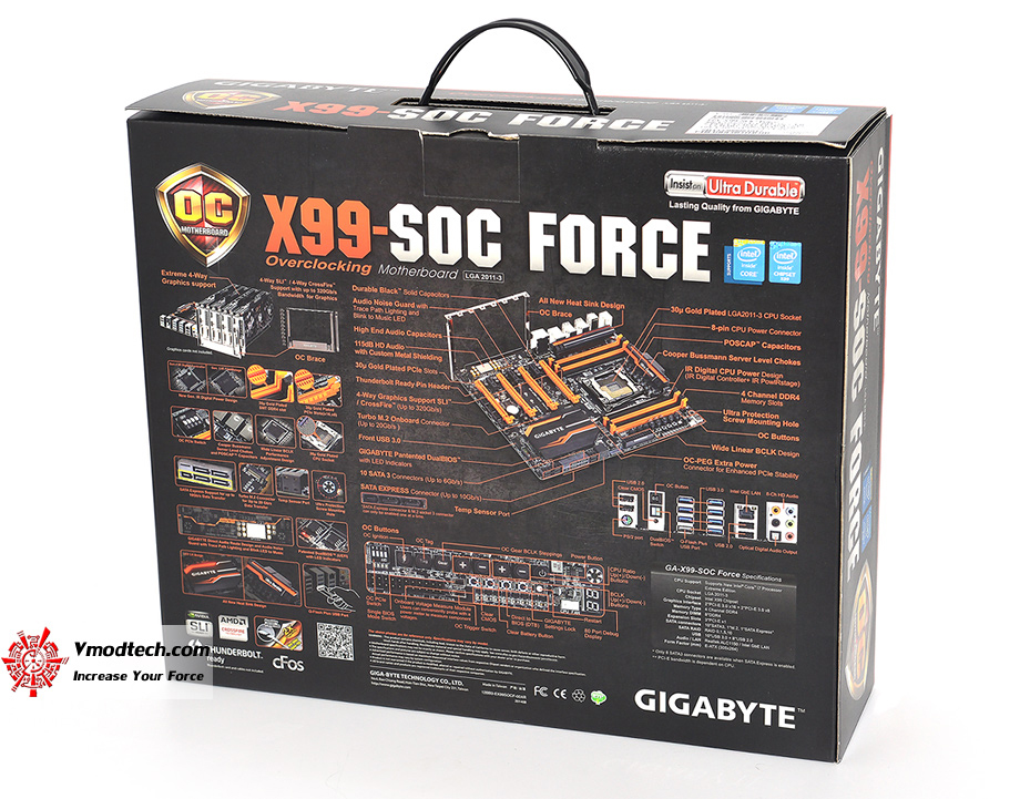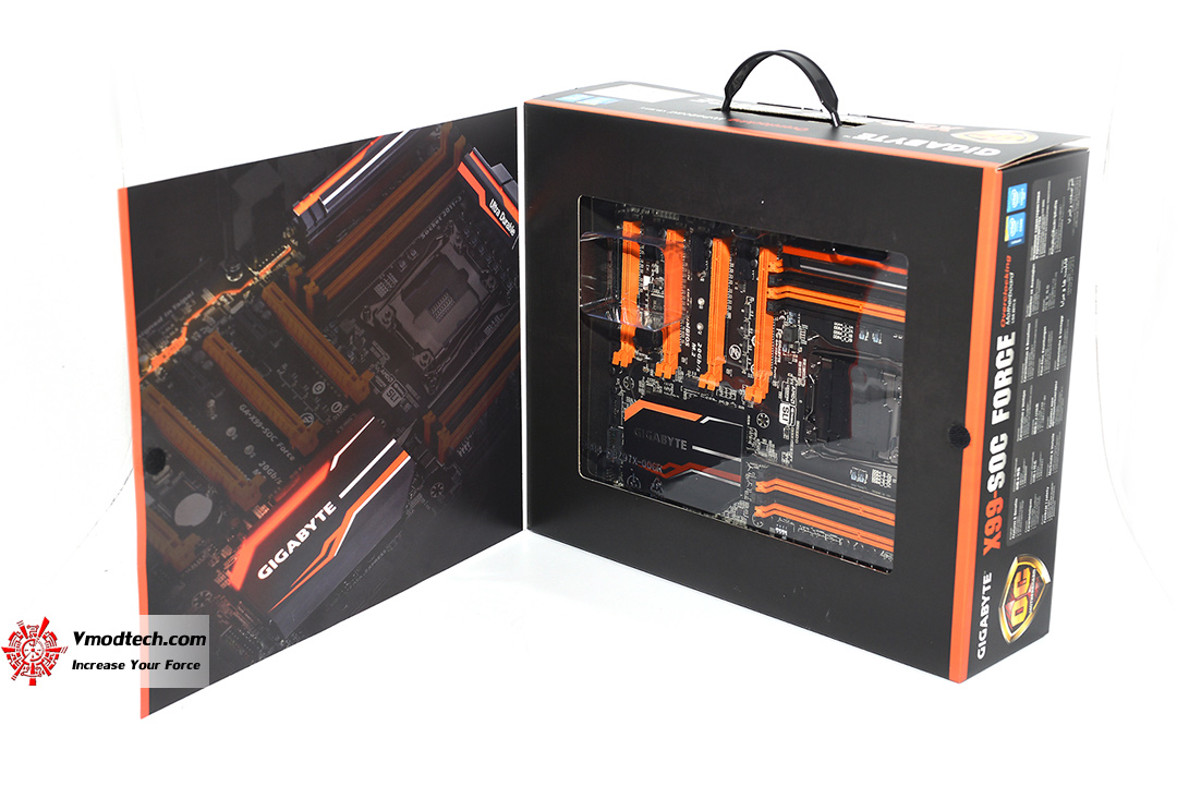 พิจารณากล่องบรรจุของ GIGABYTE X99 OC FORCE นั้นออกแบบมาได้สวยสะดุดตาด้วยธีมสีเฉดส้มๆครับ กลองบรรจุนั้นไม่ใหญ่ไม่เล็ก