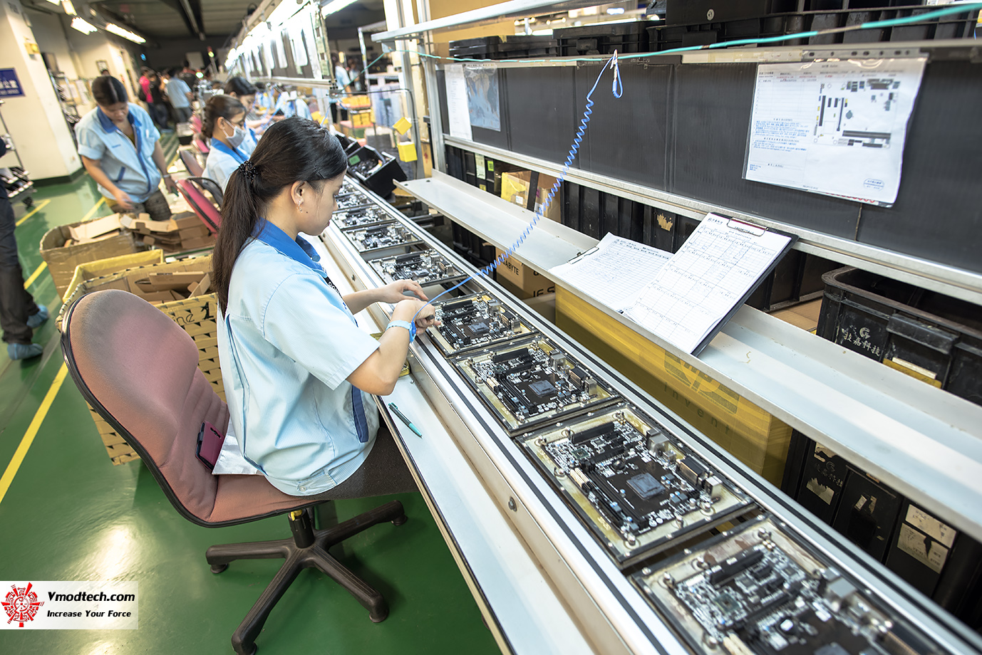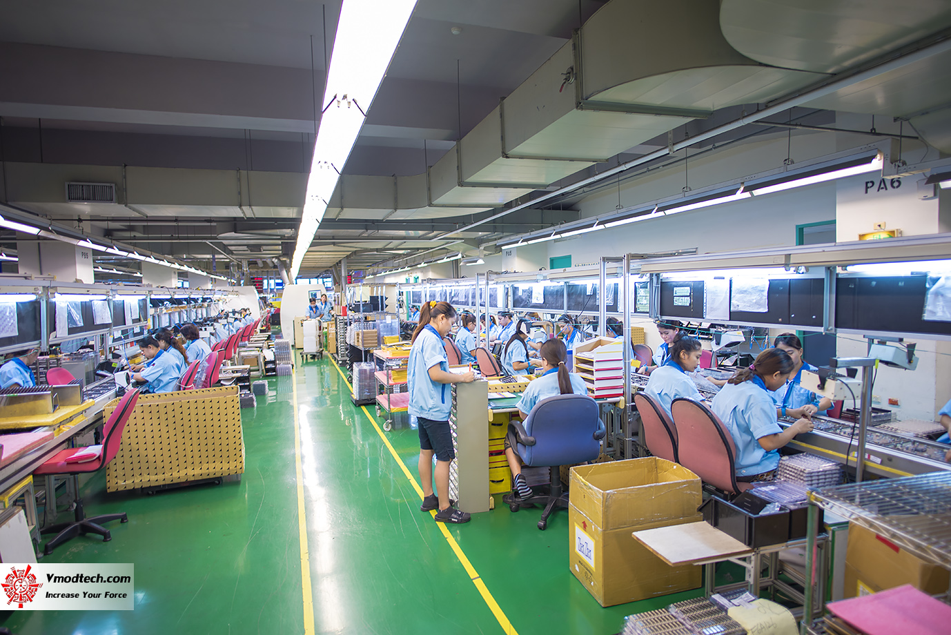 ในส่วนที่ใช้คนในการประกอบ ก็จะมีสายกราวน์ติดกับตัวพนักงานทุกคนด้วยนะครับ มาตรฐานโรงงานเยี่ยมจริงๆ