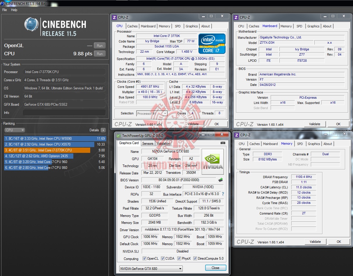 เร็วพอควรเลยสำหรับ Cinebench 11.5 คะแนนของ CPU นั้นอยู่ที่ 9.88 fts เลยนะครับ สุดยอด