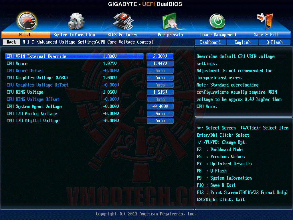 …วันนี้ก็มีทริกเล็กๆน้อยๆในการปรับแต่งมาแบ่งปันให้เหล่าจอมยุทธได้ชมกันนะครับ เผื่อๆบางท่านที่ยังไม่ทราบ โดยการอัดสัญญาณความถี่นาฬิกาของซีพียูให้ไกลๆนั้น นอกจากจะอัดไฟ VCORE เพียงอย่างเดียวแล้ว เราก็ยังสามารถอัดไฟ CPU VRIN External Override โดยในการทดสอบนี้ผมได้อัดจากค่าเดิมที่ 1.80V. ไปที่ 2.30V. ก็ช่วยให้อัดซีพียูได้ไกลขึ้นกว่าเดิมครับ หรือจะเลือกอัดช่วยให้ใช้ไฟ VCORE น้อยกว่าเดิมก็ได้นะครับ ลองเล่นกันดูครับที่ค่า 2.0-2.3V. ช่วยได้จริงๆครับคอมเฟิร์ม ส่วนค่า UNCORE Clock ของซีพียู ถ้าต้องการให้ไกลให้ลองอัดไฟ CPU RING Voltage ช่วยดูนะครับ อัดได้สูงสุดเท่าที่ผมอัดให้ดูเลยนะครับที่ 1.515V. แรงทะลุ 4.8GHz กันได้ไม่ยากครับสำหรับค่า UNCORE Clock และสุดท้ายไฟ CPU System Agent Voltage จะจำเป็นต้องอัดขึ้นเมื่อเราใช้ไฟเลี้ยงแรมเกิน 1.65V. นะครับ ปรับขึ้นช่วยให้ใช้ไฟแรมสูงๆได้อย่างมีเสถียรภาพครับ