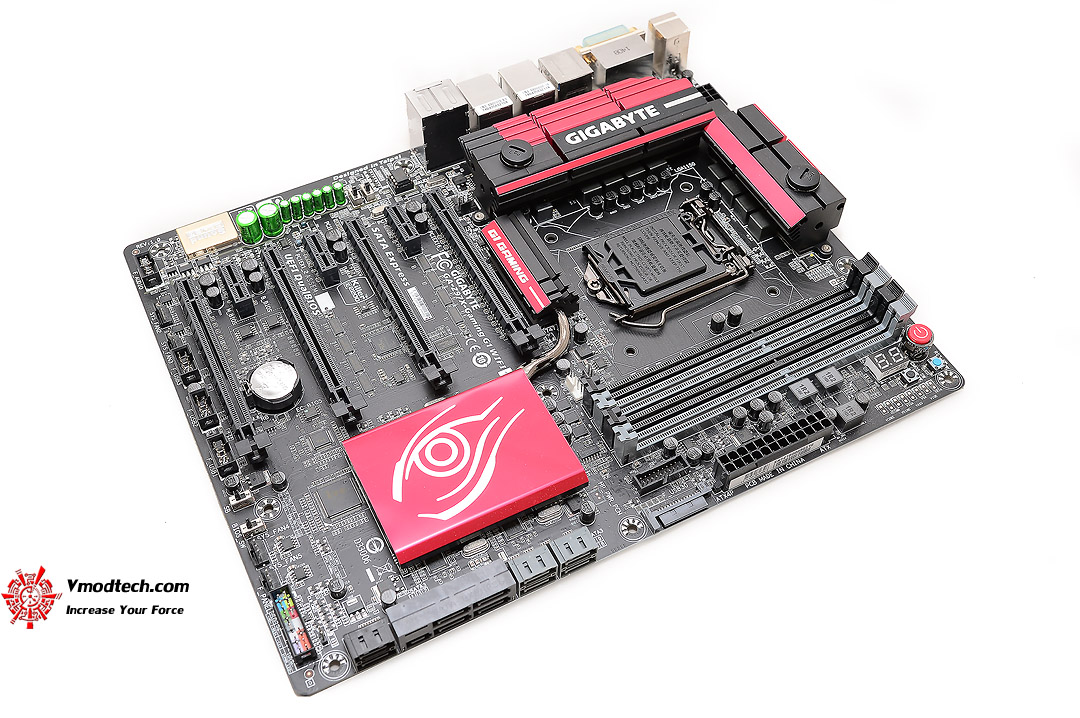 หน้าตาของมาเธอร์บอร์ดรุ่นนี้ จะออกแนวเข้มขรึมดำคาดแดงดุดัน ตามคอนเซปต์ใหม่ของบอร์ดในตระกูล Gaming ครับ