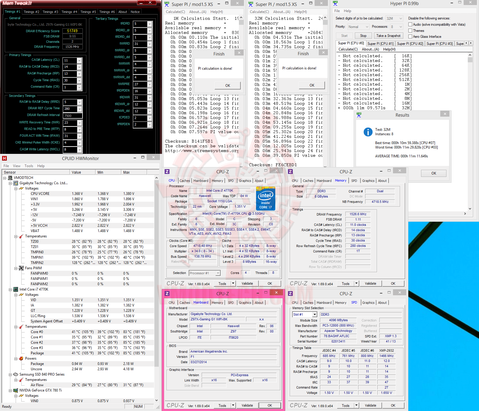 SuperPI 1M 1Thread, 32M 1Thread & 32M 8Threads