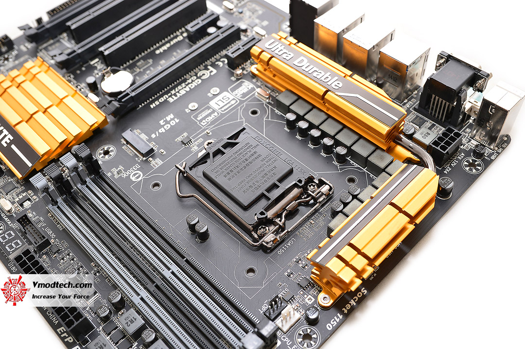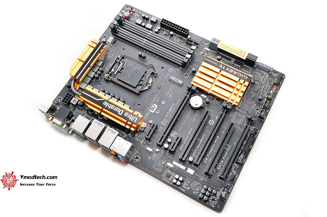 หน้าตาของมาเธอร์บอร์ดรุ่นนี้ จะออกแนวหรูหราสง่างามดำคาดทองอร่าม ตามคอนเซปต์ใหม่ของบอร์ดในตระกูล UD ครับ