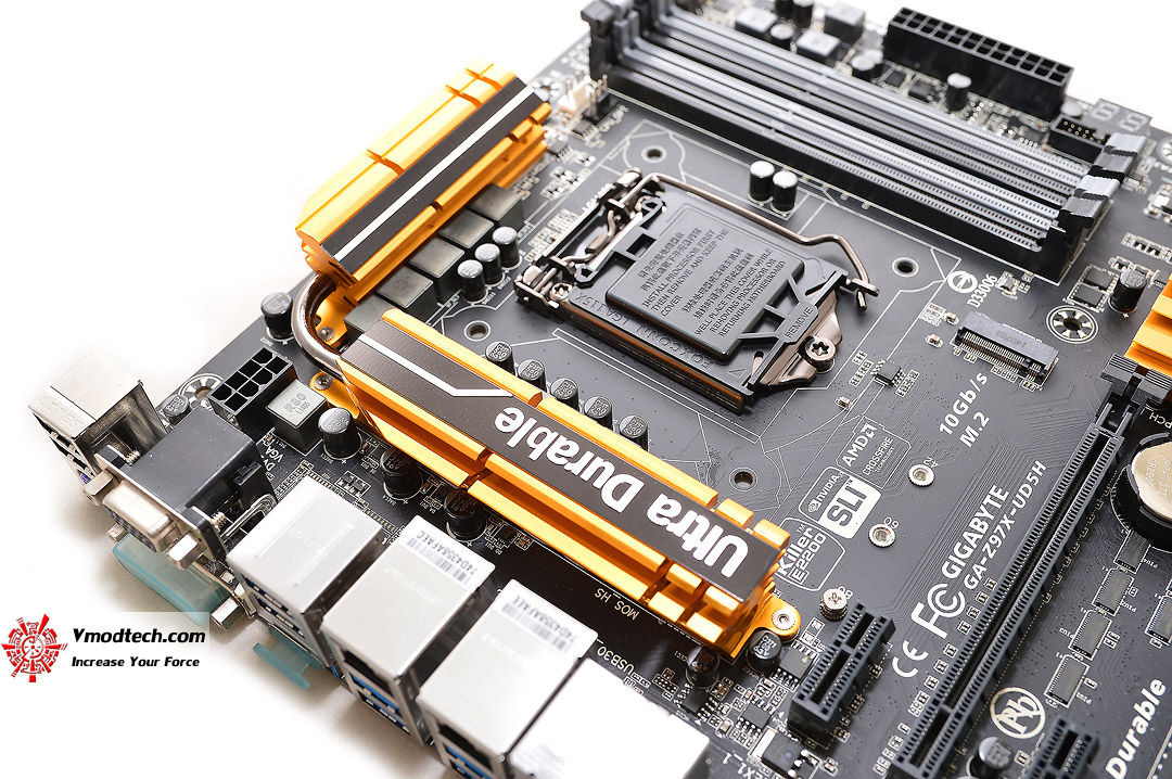 หน้าตาชุดระบายความร้อนให้กับตัวชิปเซต Z97 ที่สวยงามทองเงางาม กลมกลืนกับตัวมาเธอร์บอร์ดรุ่นนี้เป็นอย่างดี