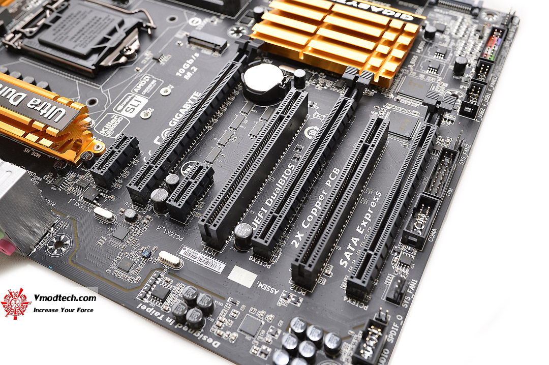 …PCI-E 3.0/2.0 X16 Slot ที่มาพร้อมกัน 3 ช่องทาง ที่สนับสนุนการทำงานในรูปแบบ 2-Ways SLI & 3-CrossFireX ตามด้วย PCI-E 2.0 X1 Slot อีก 2 ช่องทางและช่อง PCI 32bit อีก 2ช่องทางครับ