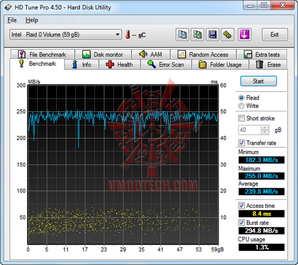 ความเร็วในการอ่านจาก HD Tune Pro นั้นดูเหมือนว่าจะถูก Raid 0 กินนิดๆ แต่ดูที่ Access time สิครับ เง้อ PHOENIX EVO แทบไม่มี Delay ในการอ่านเลย แจ๋ว