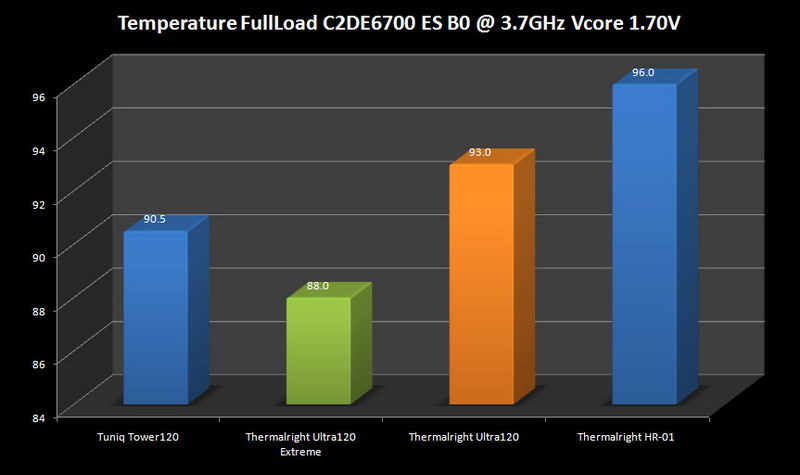 โดยFullLoad ผมใช้Orthos เลือกCustomที่10K เป็นเวลา30นาที เลือกค่าที่จุดเฉลี่ยมาทำกราฟ ซึ่งผมลองดูแล้วเป็นค่าที่ร้อนที่สุด โดยจะร้อนกว่า8Kและ12Kขึ้นไปทั้งหมด และThermal Compound ที่ใช้ในการเทสต์ครั้งนี้ใช้Actic Cooling MX-1นะครับ ไปชมกันเลยครับ เรื่องผลการเทสต์นี่ เชื่อไม่เชื่ออยู่ที่วิจารณญาณของแต่ละบุคคลนะครับ บางคนบางที่อาจว่าตัวนั้นดีกว่า ตัวนั้นเย็นกว่า อันนี้ผมไม่รู้นะครับ รู้แต่ว่าตอนพวกผมนั่งเทสต์ครั้งนี้ ผมทำด้วยความเป็นกลางมากที่สุดครับ เพราะพวกผมเองก็กลัวโดนย้อนเสี้ยนเหมือนกันครับ อิอิ