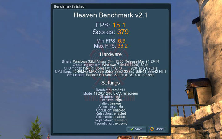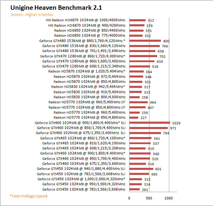 …สำหรับประสิทธิภาพของการ์ดที่ใช้ชิป Radeon HD 6870 กับ Benchmark ตัวนี้ จะเห็นได้ว่าแรงโดดเด่นอยู่พอสมควรเลยครับเมื่อเทียบกับ Radeon HD 5870 จะเห็นได้ว่าคะแนนออกมาแซงรุ่นพี่กันไปอย่างหน้าตาเฉย ซึ่งน่าจะมีผลมาจากที่ได้มีการพัฒนาการทำงานในส่วนของ DX11 Tessellation ให้มีประสิทธิภาพที่สูงขึ้นนั่นเอง
