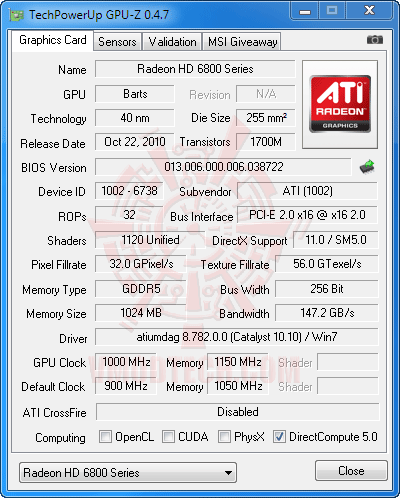 HIS AMD Radeon HD 6870 @ Overclock Speed (1,000/4,600MHz)
