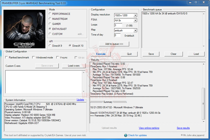 DX10 ENTHUSIAST Mode 1,920X1,200 AA 0X