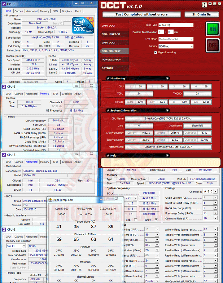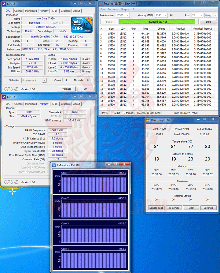 Core i7 920 จัดความเร็วไปที่ 4.45GHz เสถียรพอได้ครับ ลุย!