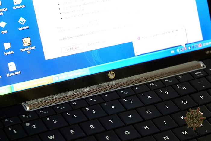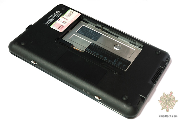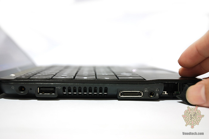ด้านซ้ายมือ รูระบายความร้อน พอร์ต USB และพอร์ตพิเศษสำหรับอุปกรณ์ของ HP ครับ รวมไปถึงพอร์ต RJ45 ที่ซ่อนอยู่ในจุ๊กยางที่ต้องดึงเปิดออกมา (ตรงนี้ดึงลำบากนิดนึง)