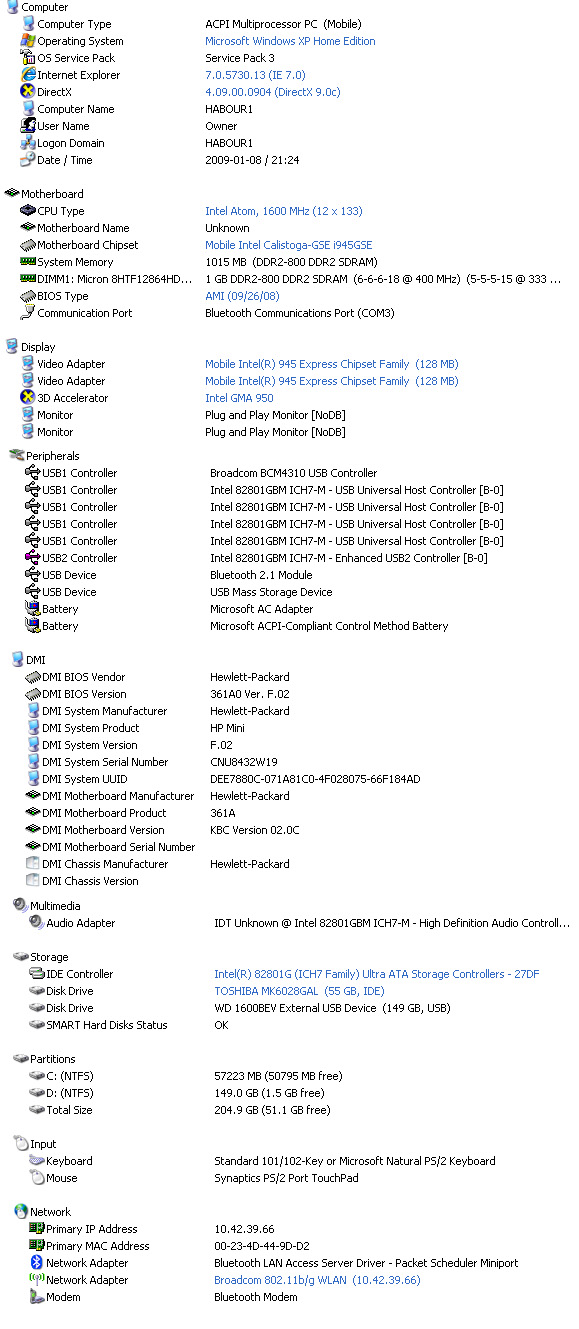 ภาพจากโปรแกรม Everest แสดงรายละเอียดของเครื่อง