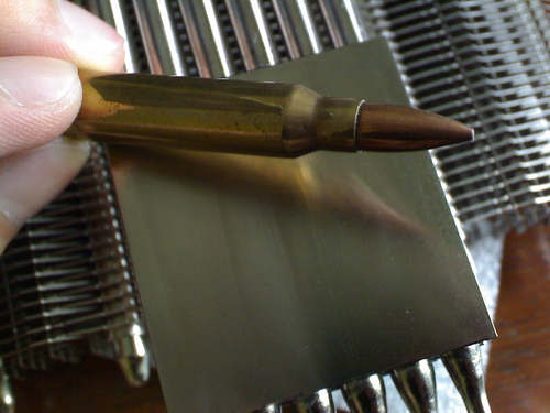 จากนั้นเอาก็ทาซิลิโคนลงไป แล้วก็เอาซิงค์บด ๆ บี้ ๆ ถู ๆ ไถ ๆ ลงไปให้มันไม่มีฟองอากาศ แล้วก็นำตัวครอบฐานที่เอาไว้สำหรับยึดซิงค์ครอบลงไปบนฐานแล้วร้อยน๊อตให้เรียบร้อย จากนั้นเราก็เอาเหล็กค้ำรูปตัว X ไปค้ำด้านหลังของตัวการ์ดโดยเสียบลงไปให้ตรงกับน๊อตทั้ง 4 ตัวที่เราร้อยเอาไว้แล้ว อ้อ อย่าลืมเอาแผ่นรองที่เขาแถมมาให้ แปะตรงกลางเหล็กค้ำก่อนนะครับ ต้องขออภัยด้วยครับที่ภาพนี้มันไม่ชัดเท่าไหร่