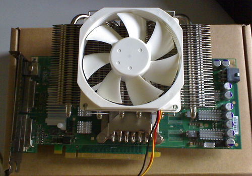 แน่นอนครับ ก่อนอื่นเราต้องแกะซิงค์เดิมออกมาก่อน ตอนแกะก็ระวัง ๆ หน่อยนะครับ เพราะว่าซิลิโคนที่ทาง nvidia ทามาให้นั้น เหนียวมาก ๆ ค่อย ๆ ดึงแล้วกันครับ ขยับซ้ายทีขวาที ใจเย็น ๆ หรือใครจะใช้วิธีรัน 3dmark ก่อนแล้วค่อยปิดเครื่อง - แกะซิงค์ก็ได้ครับ ง่ายกว่ามากเพราะซิลิโคนมันจะนิ่ม ซึ้งในส่วนของวิธีการแกะนั้นผมขอไม่พูดถึง เพราะว่าขันน๊อตด้านหลังที่มีสปริงออกมาให้หมด แล้วก็น๊อตตรงพอร์ต DVI อีก 2 ตัว จากนั้นก็ดึงซิงค์เดิมออกมาได้เลย ไม่มีอะไรยากครับ ในรูปผมทำความสะอาดเรียบร้อยแล้ว