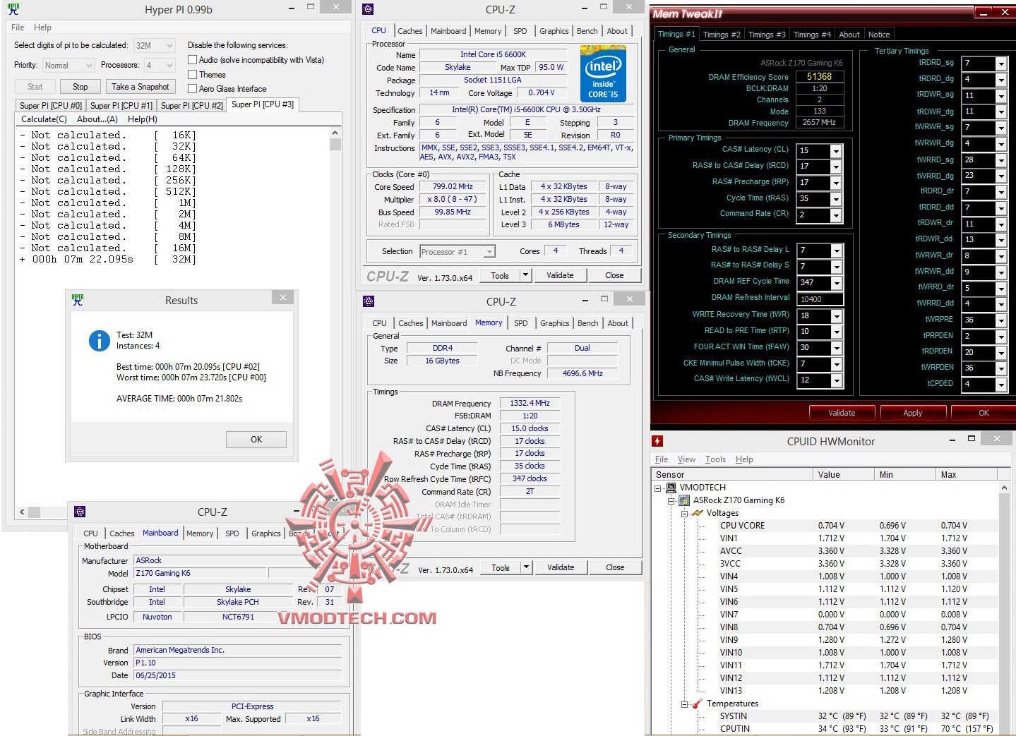 สำหรับชุดทดสอบ SuperPI1MB จบไปที่ 7.782นาที , 32MB จบไป7นาที 23.720นาที แรงดีเลยครับ ส่วน HyperPI32MB ก็ผ่านหมดอยู่ที่ 7วินาทีครับ แรงเอาเรื่องเลยครับในบัสแรมเดิมเพียง 2666Mhz ความจุ 16GB