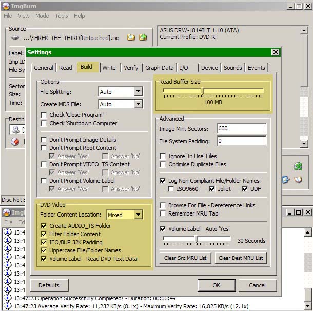 เมนู Build Setting มีส่วนที่สำคัญคือเราสามารถเซต Buffer ได้เองครับ เครื่องใครแรงๆ ตั้งไว้ซัก 150mb เลยครับ เวลาสร้างไฟล์ Image จะรวดเร็วมาก และส่วนของ DVD Video ก็มีให้เซตค่าด้วยคับ (ตรง Create AUDIO_TS Folder ท่านที่ไรท์หนังบ่อยๆคงจะชอบใจ)
