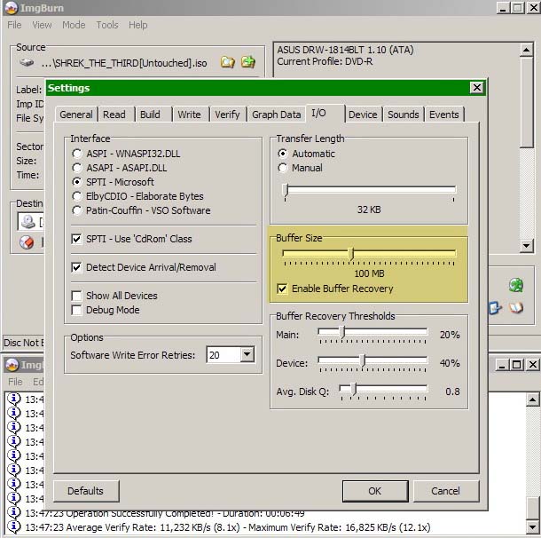 สามารถตั้ง Buffer ในการอ่าน / เขียน แผ่นได้ แหล่มไปเลยครับ ขนาด NERO ยังตั้งได้ไม่เกิน 80mb เลยน่ะนั่น
