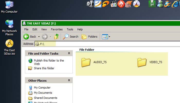 เมื่อเรา Mount Drive ขึ้นมาจะพบกับ Folder ภายในแผ่น (ตรงนี้ใครไม่ได้เซตให้ Create AUDIO_TS เอาไว้จะไม่มี Folder นี้เพิ่มขึ้นมาครับ)