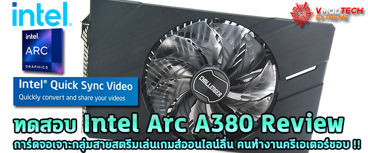 …สวัสดีทุกๆท่านที่เยี่ยมชมเว็บไซต์ Vmodtech.com ของเรากันครับ วันนี้ผมมีรีวิวการ์ดจอจากทาง Intel รุ่นใหม่ล่าสุดที่พึ่งจะเปิดตัวกันไปในแบรนด์ ASRock มากันในรุ่น Intel Arc A380 Challenger ITX 6GB OC ซึ่งถือเป็นการ์ดจอรุ่นแรกของอินเทลที่เป็นการ์ดจอแยกรุ่นแรกที่ทำการเปิดตัวในปีนี้เลยครับ โดยได้รีวิวรายละเอียดประสิทธิภาพการทำงานในด้านกราฟฟิกและเกมส์มิ่งกันไปแล้วครั้งหนึ่งในบทความครั้งที่แล้ว แต่ในวันนี้เราจะมาทดสอบประสิทธิภาพเด่นของการ์ดจอ Intel Arc A380 Challenger ITX 6GB OC นั้นก็คือประสิทธิภาพการเข้ารหัส/ถอดรหัสที่ใช้การทำงานของ Intel Quick Sync Video ที่ออกแบบมาให้สำหรับบรรดาครีเอเตอร์สายตัดต่อหรือแม้กระทั่งสายสตรีมมิ่งที่ทั้งสตรีมออนไลน์หรือเข้าไปชมวีดีโอสตรีมมิ่งทั่วไปหรือแบบ AV1 video codec มาตรฐานบีบอัดวิดีโอ 4K AV1 (AOMedia Video Codec 1.0) ที่มีพาร์ทเนอร์ประกอบไปด้วย Google, Netflix, Facebook, Amazon และ Microsoft ในการร่วมกันพัฒนา ซึ่งเรียกได้ว่าเป็นจุดเด่นของการ์ดจอ Intel Arc A380 เลยก็ว่าได้ครับ ในส่วนของการเล่นเกมส์ผมก็ได้ทดสอบควบคู่กันรวมไปถึงการทดสอบแปลงไฟล์ถอดรหัสเข้ารหัสถึงประสิทธิภาพของไฟล์แบบ H.265 ในแบบ QVS ที่เป็นของทางอินเทลเปรียบเทียบกับคู่แข่งให้ท่านได้ชมกันอีกด้วย โดยวันนี้ทดสอบร่วมกับซีพียู Intel Core i9 12900K ตัวท็อปรุ่นใหม่ล่าสุดในการทดสอบประสิทธิภาพจุดเด่นของตัวการ์ดจอ Intel Arc A380 Challenger ITX 6GB OC ว่าจะแรงคุ้มค่าสำหรับสายครีเอเตอร์กันหรือไม่ เดี๋ยวเราไปชมกันเลยครับว่าจะแรงคุ้มค่าหรือไม่