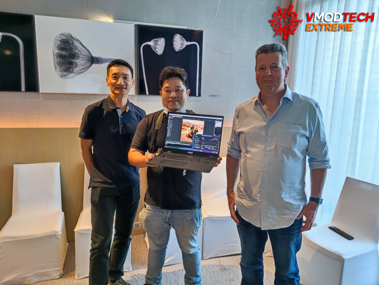 สวัสดีครับทุกท่านที่เยี่ยมชมเว็บไซต์ Vmodtech วันนี้ทางทีมงาน Vmodtech ได้มีโอกาสพิเศษแบบจากทางอินเทลที่ให้เกียรติเชิญเข้ามาชมข้อมูลแบบพิเศษที่ไม่สามารถเปิดเผยได้ (ในตอนเยี่ยมชม) กับการเปิดตัวซีพียู Intel Meteor Lake รุ่นที่ 14 ใหม่ล่าสุดที่เราพูดถึงกันแทบทุกอาทิตย์ในข่าว ในวันนี้อินเทลได้จัดโชว์โน๊ตบุ๊ครุ่นพิเศษที่เป็น ES ซีพียูรุ่นต้นแบบที่นำเอาซีพียู Intel “Meteor Lake” มารันโชว์ประสิทธิภาพ AI ที่ประมวลผลโดยใช้ VPU ในการทำงานร่วมด้วย โดยในงานมิตติ้งครั้งนี้ได้รับเกียรติจากผู้บริหารอินเทลมาต้อนรับและให้ข้อมูลแบบเจาะลึกแต่ก็ยังไม่ได้เผยรายละเอียดที่เป็นความลับออกมามากนักเพราะเป็นซีพียูตัวต้นแบบนั่นเองครับ เราไปชมภาพบรรยายการและรายละเอียดของซีพียูกันเลยครับ