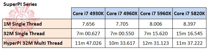 การทดสอบของ CPU Intel Core i7 5820K ในวันนี้นั้น ผมได้นำผลการทดสอบของ Intel Core i7 4930K และ 4960X IVY Bridge E มาร่วมเปรียบเทียบด้วย