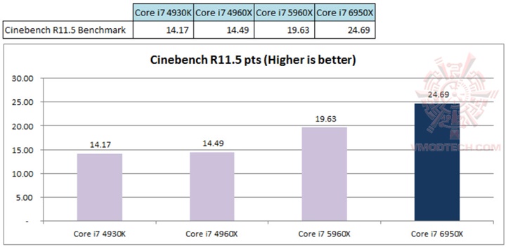 CINEBENCH R11.5 เป็นอีกโปรแกรมเทสนึงที่แสดงให้เห็นความแรงของ CPU ครับ หัวเยอะกว่า สถาปัตยกรรมใหม่กว่าทำให้แรงกว่าเป็นกระบุง