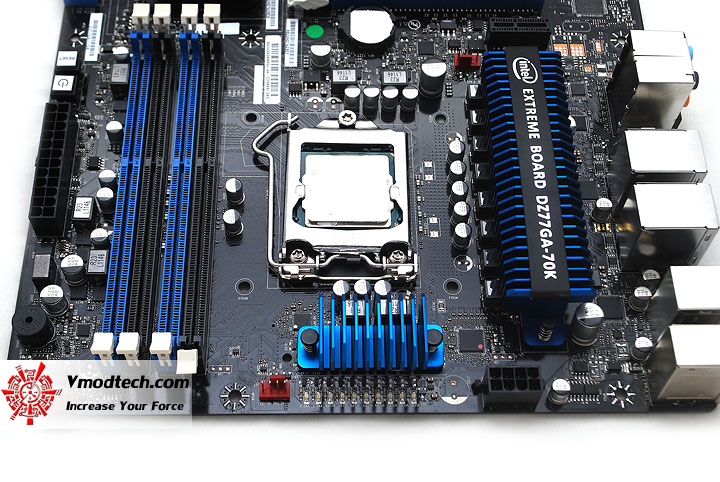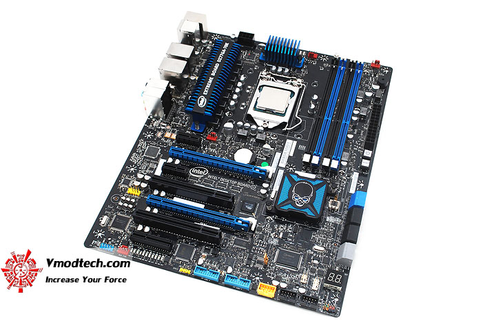 Heatsink ภาคจ่ายไฟที่มีการออกแบบเป็นเอกลักษณ์ของ Intel พร้อมกับมีชื่อรุ่น เท่ห์จริงๆ