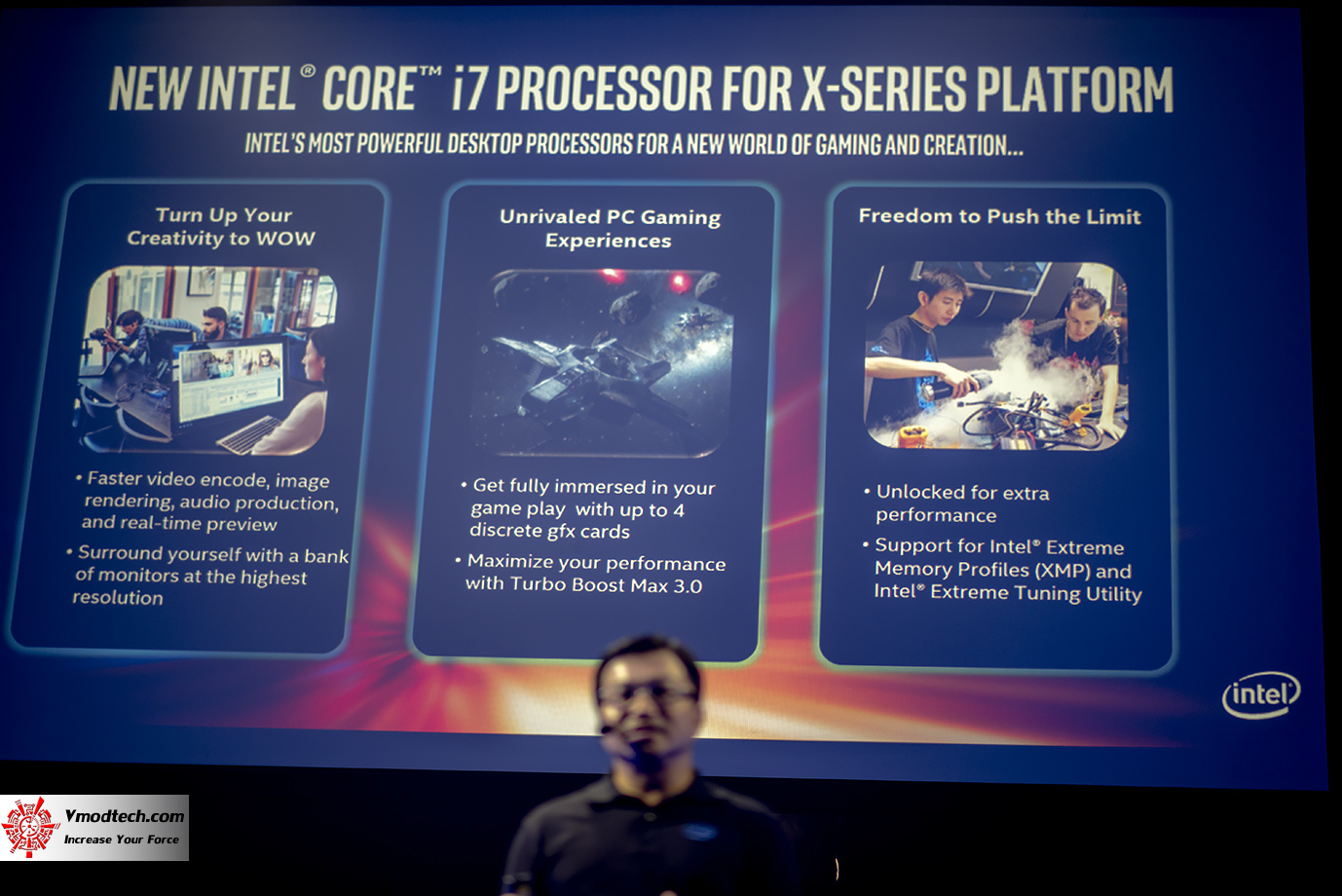 และเพื่อเป็นการแสดงให้เห็นถึงประสิทธิภาพการใช้งานจริงของ Intel® Core™ i7 processor Extreme Edition อินเทลได้มีการเชิญ นายดนัย ชุตินธร ผู้ก่อตั้ง BLUEPANO ผู้ผลิตสื่อโฆษณาในรูปแบบ Virtual Reality 360 VDO ได้กล่าวถึงคุณประโยชน์ของโปรเซสเซอร์รุ่นใหม่นี้ที่ช่วยเพิ่มประสิทธิภาพในการทำงาน ส่งเสริมศักยภาพในการแข่งขันในอุตสาหกรรม ด้วยรูปแบบของงานที่ทำอยู่นี้ต้องใช้ความสามารถในการประมวลผลภาพที่มีรายละเอียดสูงมาก อย่างเช่น การทำภาพ Virtual Reality 360 VDO ที่เป็น time lapse ต้องเรนเดอร์ภาพที่มีความละเอียด 4K เป็นจำนวนหลายพันภาพ การมีโปรเซสเซอร์ที่มีประสิทธิภาพ อย่างเช่น Intel® Core™ i7 processor Extreme Edition นี้ ช่วยให้เราสามารถผลิตชิ้นงานที่มีคุณภาพดียิ่งขึ้น และประหยัดเวลาในการทำงานได้มากขึ้นเกือบเท่าตัว การมีโปรเซสเซอร์ที่ดีเช่นนี้ ทำให้การแข่งขันในวงการไม่ใช่การแข่งขันกันที่ต้นทุนด้านอุปกรณ์อีกต่อไปเพราะว่าอุปกรณ์ในสมัยก่อนเป็นอุปกรณ์เฉพาะที่มีราคาสูง ต่างจากปัจจุบันที่สามารถใช้ Desktop CPU ทำให้เป็นการแข่งขันกันที่ความสามารถ ช่วยให้ผู้ประกอบการรายเล็กสามารถผลิตผลงานคุณภาพสูงได้เช่นกัน