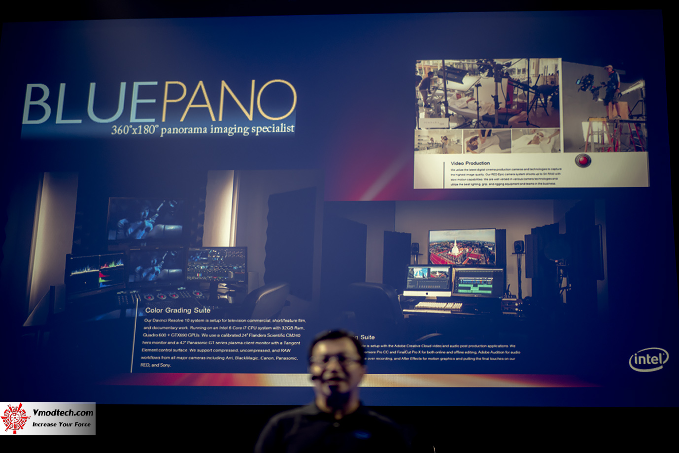 นายดนัย ชุตินธร ผู้ก่อตั้ง BLUEPANO ร่วมพูดคุยบนเวทีถึงประสิทธิภาพของ Intel® Core™ i7 processor Extreme Edition ที่ช่วยให้เพิ่มศักยภาพในการทำงานการทำวิดีโอระดับ …. K และวิดีโอแบบ 360° ที่หนักหน่วง และเปิดโอกาสในการแข่งขันทางธุรกิจ