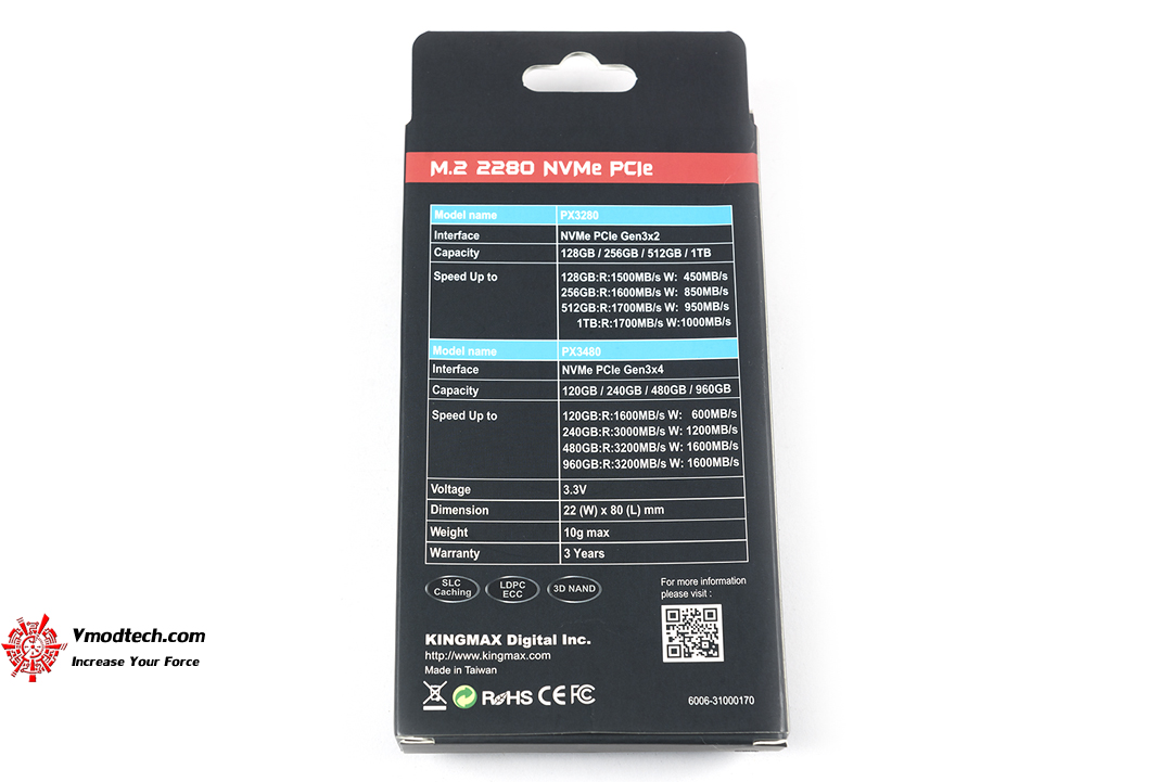 แพกเกจ Kingmax Zeus PX3280 256GB นั้นมาแบบง่ายๆเหมือนกับ SSD m.2 ที่วางขายอยู่ในตลาด