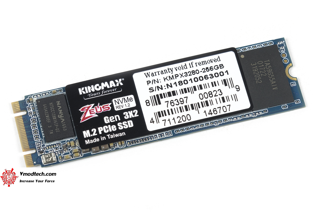 หน้าตาเต็มๆของ Kingmax Zeus PX3280 256GB ที่มีอินเตอร์เฟสแบบ m.2 PCIe ตัวการ์ดนั้นมีขนาด 2280
