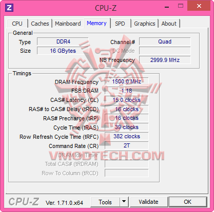 DDR4 3,000 MHz 15-16-16-39-2T 1.50V (Default settings from SPD memory)
