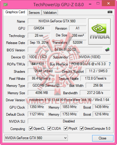 | .Graphic Card | ..NVIDIA GeForce GTX 980 4GB GDDR5 @ 1,350/7,412 MHz |